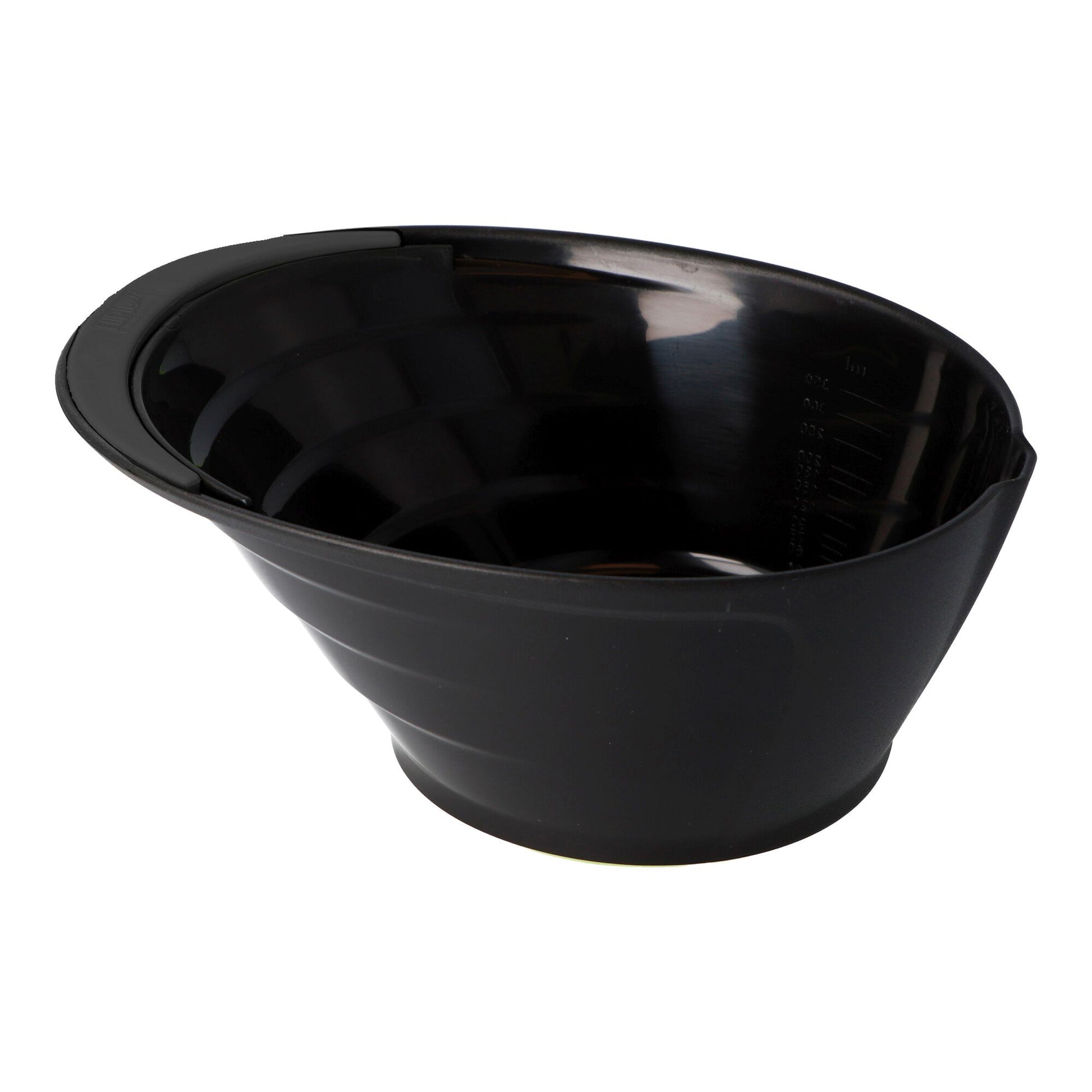 Bol profesional para la preparación de tintes y tratamientos capilares, diseñado para ofrecer estabilidad, precisión y comodidad durante el trabajo técnico en peluquería. Su base antideslizante evita movimientos no deseados y el asa facilita un manejo seguro y ergonómico.