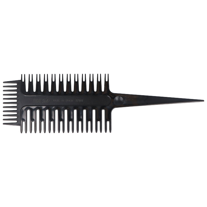 Peine profesional diseñado para la creación de mechas, balayage y técnicas de coloración avanzada. Su diseño permite separar secciones de cabello con máxima precisión, facilitando una aplicación controlada del color.